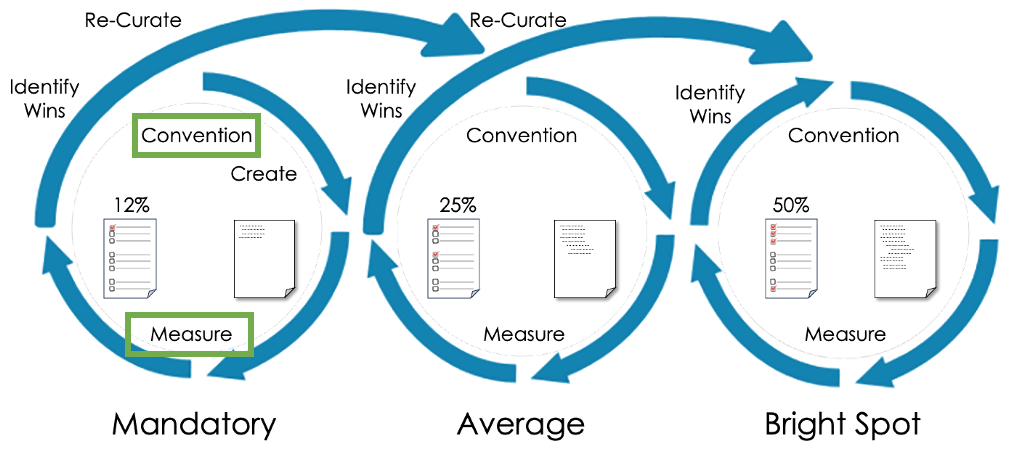 Figure 1. Continuous enhancement is an iterative process of planning, action, and measurement that improves metadata over time. Recommendations play the critical role of targets for these improvement iterations.